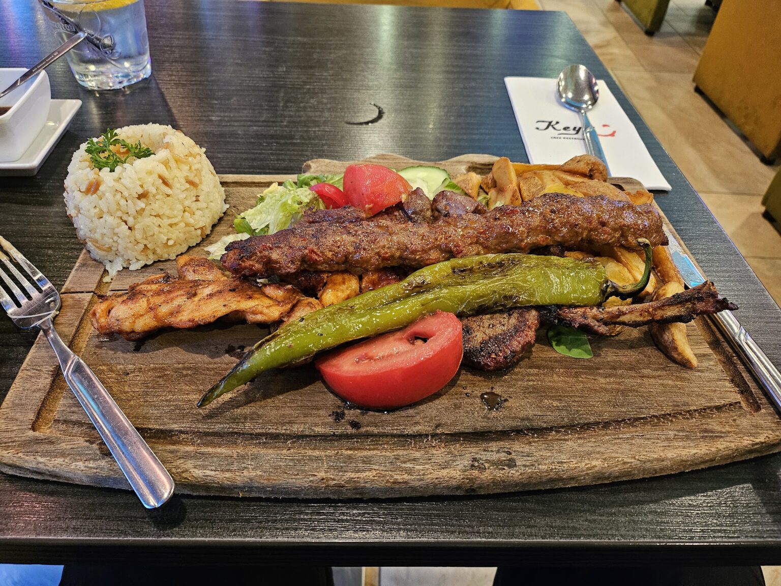Keyf, like its name, is a wonderful place where you can eat in a family environment with pleasure and in a delicious environment, and the friends who serve you in a delicious environment, all of them are first class and the food is delicious, I highly recommend it, they deserve all kinds of praise, they deserve all kinds of praise, it is wonderful that the employees of a wonderful business take care of the customer, this is a family business, here you do not feel like a stranger here, they are very warm-blooded.