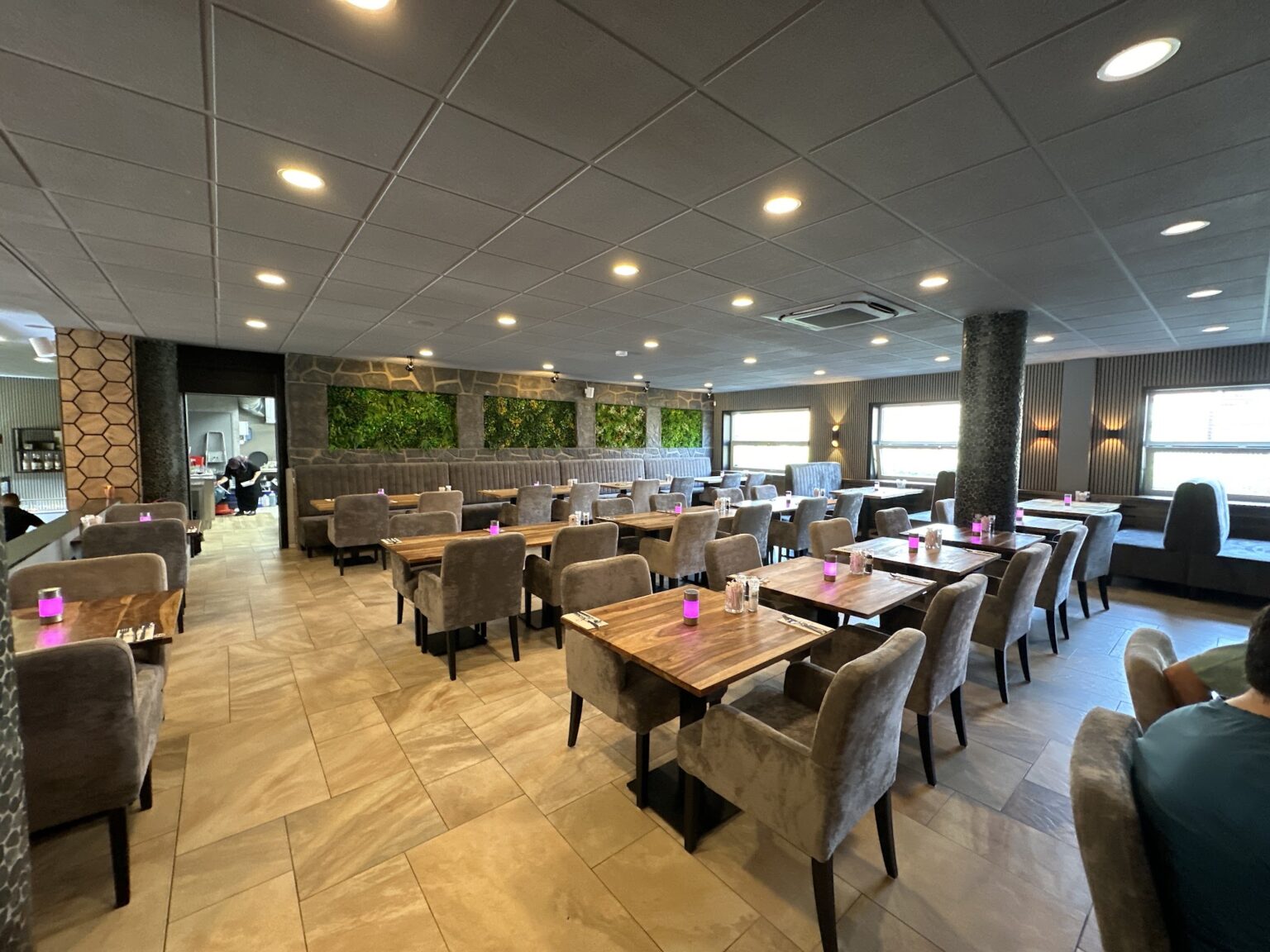 The restaurant is described as elegantly decorated and the atmosphere is pleasant.